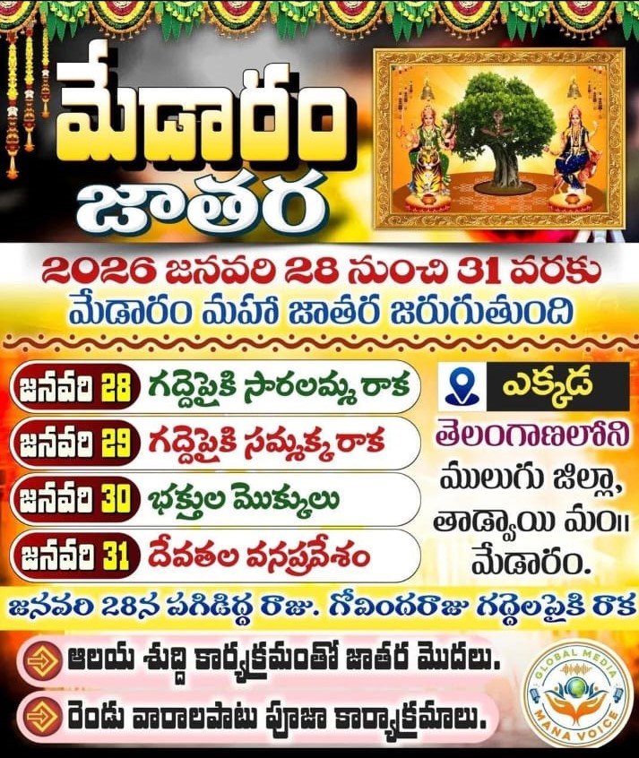 मेदारम जतरा 2026 मेदारम महा जतरा 28 से 31 जनवरी तक होगा